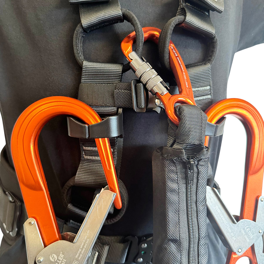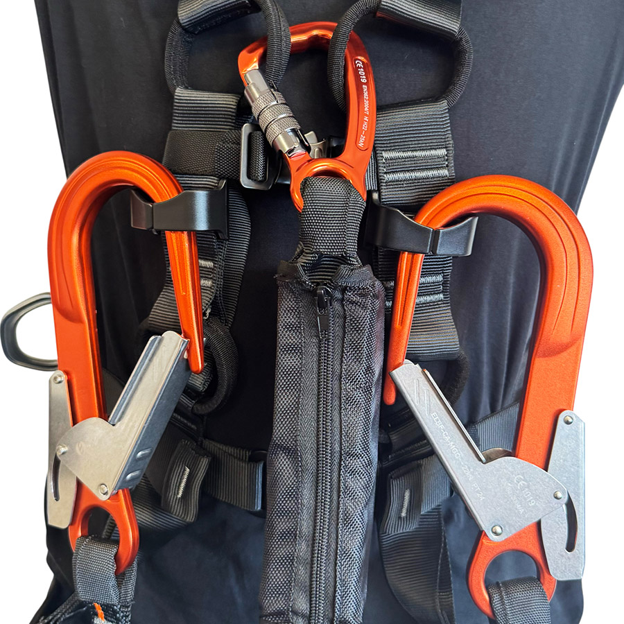 The ELLERsafe HX201 connector holder is a nylon attachment system for fall arrest lanyards. The clips are designed to attach to the shoulder straps of most harnesses. The holders provide storage for MGO connectors on both shoulder straps, keeping them out of the way during movement while ensuring they remain easily accessible. In the event of a fall, the system releases the MGO connectors, allowing the energy absorber to function as intended.